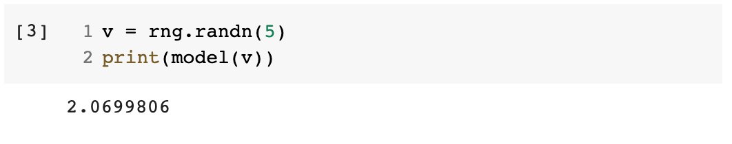 Suppose you've implemented a model that maps a vector input to a scalar output. As an example, here's a simple function similar to a single neuron in a neural net:
