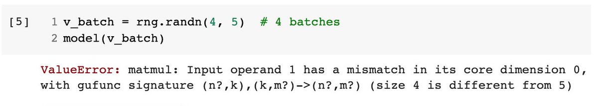 Now, suppose you want to apply this model across a 2D array, where each row of the array is an input. Passing this batched data directly leads to an error: