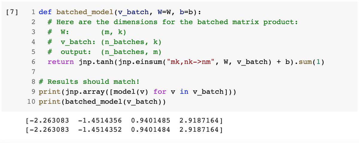 For runnable versions of all the code snippets in this thread, see jax_vmap.ipynb in this gist: https://gist.github.com/jakevd...