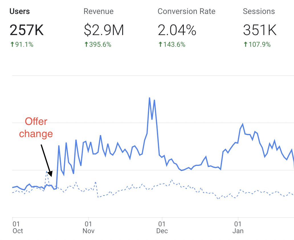 Although Q4 is not an ideal time for testing the offer, we didn't want to discount so we introduced bundle offers By bundling the products we counted on increasing the AOV + the discount there is not hurting them (and their margins) so much as it would do 30-40% sitewide
