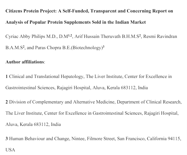 1/30 Our "Protein Project" report is here What is it? Unique public-health project funded by @paraschopra to analyze common/well-known protein supplements sold in India Who did it? Me & team at The Liver Institute with world class, independent food/drugs testing Neogen Labs.