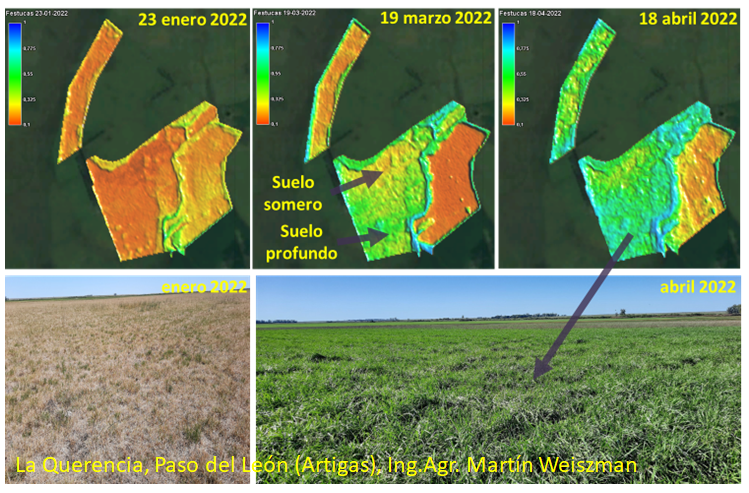 6/11 La mortandad va a ser más marcada en los suelos someros, porque las plantas no pueden extraer agua de horizontes profundos que "usualmente" retienen agua suficiente para proveer los 0.2 mm/dia que necesitan festuca o dactylis para no morir.