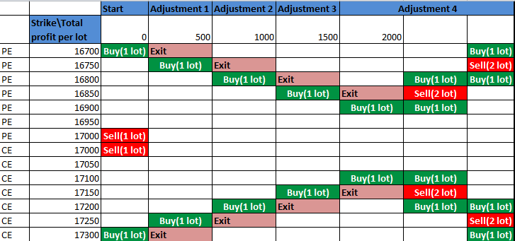 (3/n) Keep shifting buy strike towards sell strike after every Rs 500 profit per lot.