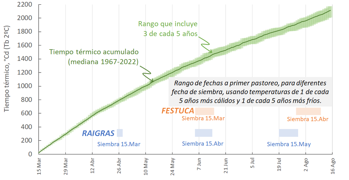 8/11 Durante otoño es crítico considerar cómo viene la acumulación de grados-día (suma térmica), ya que es lo que determina los días requeridos para producir cada hoja, y por ende lo que controla el **tiempo al primer pastoreo**