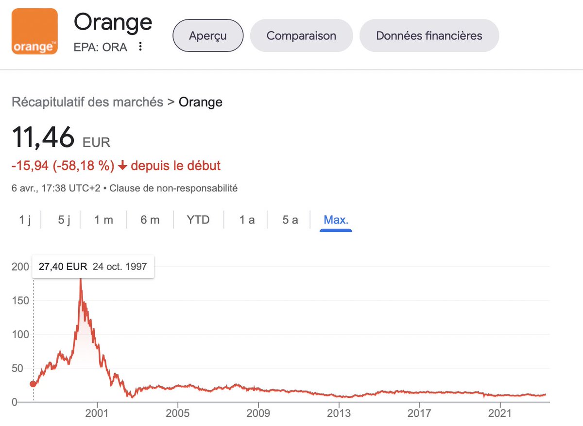 📞Orange : malgré sa position dominante sur le marché, l'action l'action a chuté de plus de 58% depuis son introduction en 1997