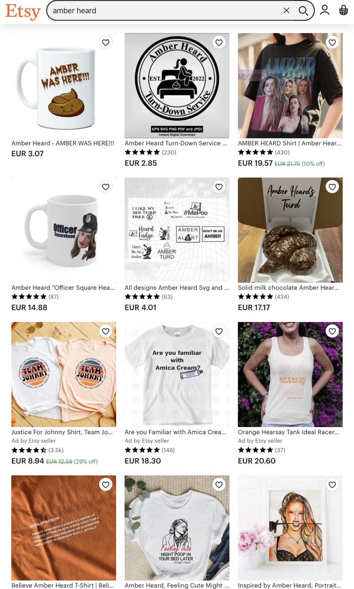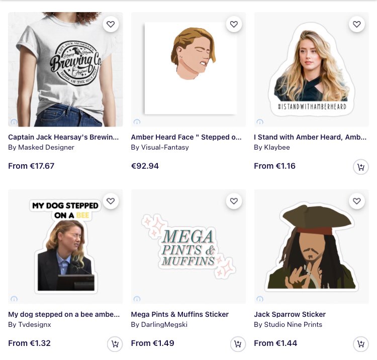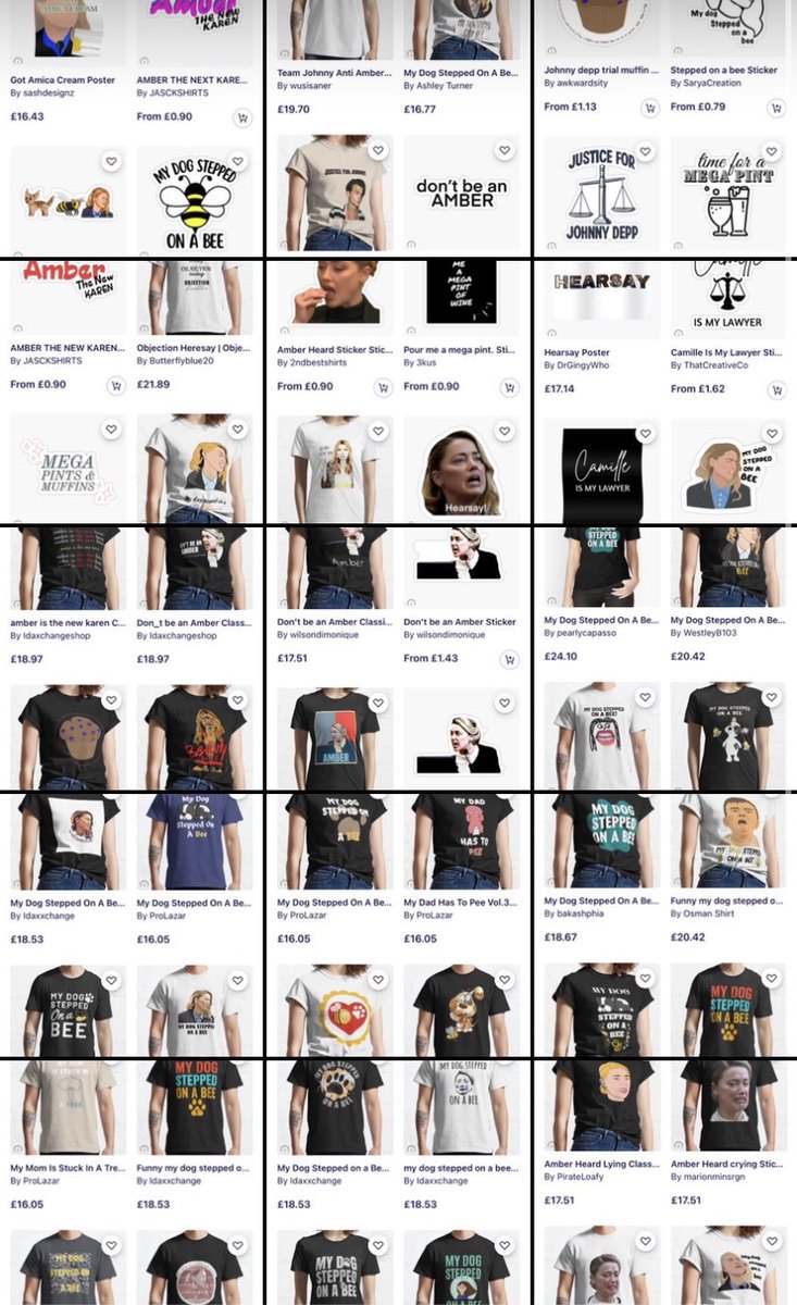 Redbubble: allowed people to sell merch with amber's crying face on it, her SA testimony etc.