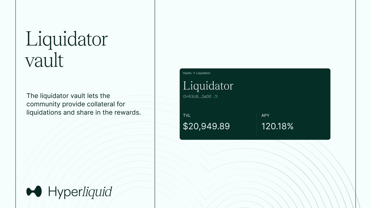 2/ Unlike other platforms where the exchange or privileged MMs profit from liquidation flow, liquidations on Hyperliquid are democratized through the liquidator vault, which shares its profits among its depositors.