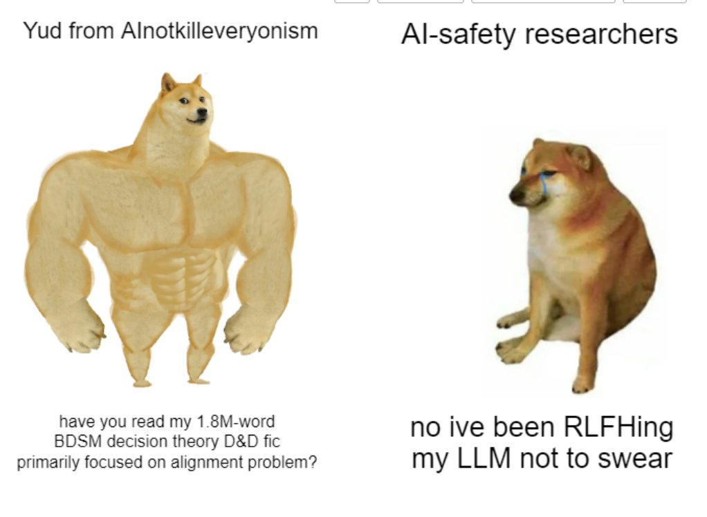 @ESYudkowsky Even if AI notkilleveryoneism can't save us it will at least entertain us