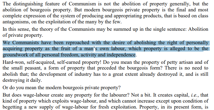 Myth #2: Marx advocated for the abolition of all property. He wanted no one to own anything and still be happy! He was envious! Communism advocates for the end of private property, which is property that subjugates others for a profit. Hard earned property will not be removed.