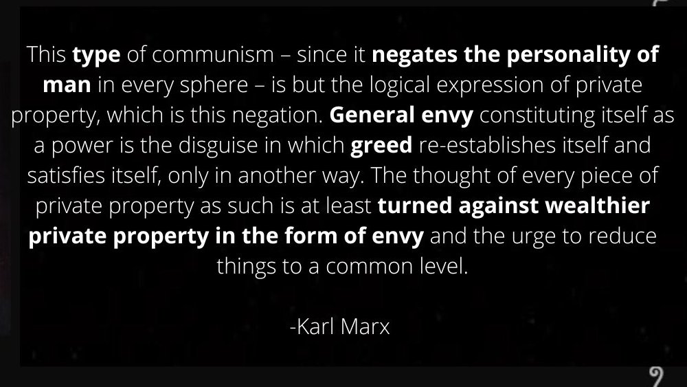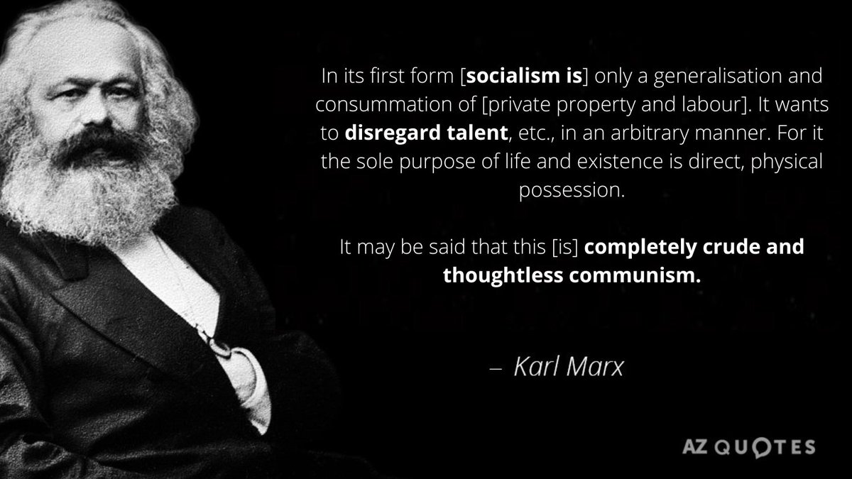 Communism can not be this crude form of the government owning everything. Marx called that "thoughtless" communism that disregards talent.