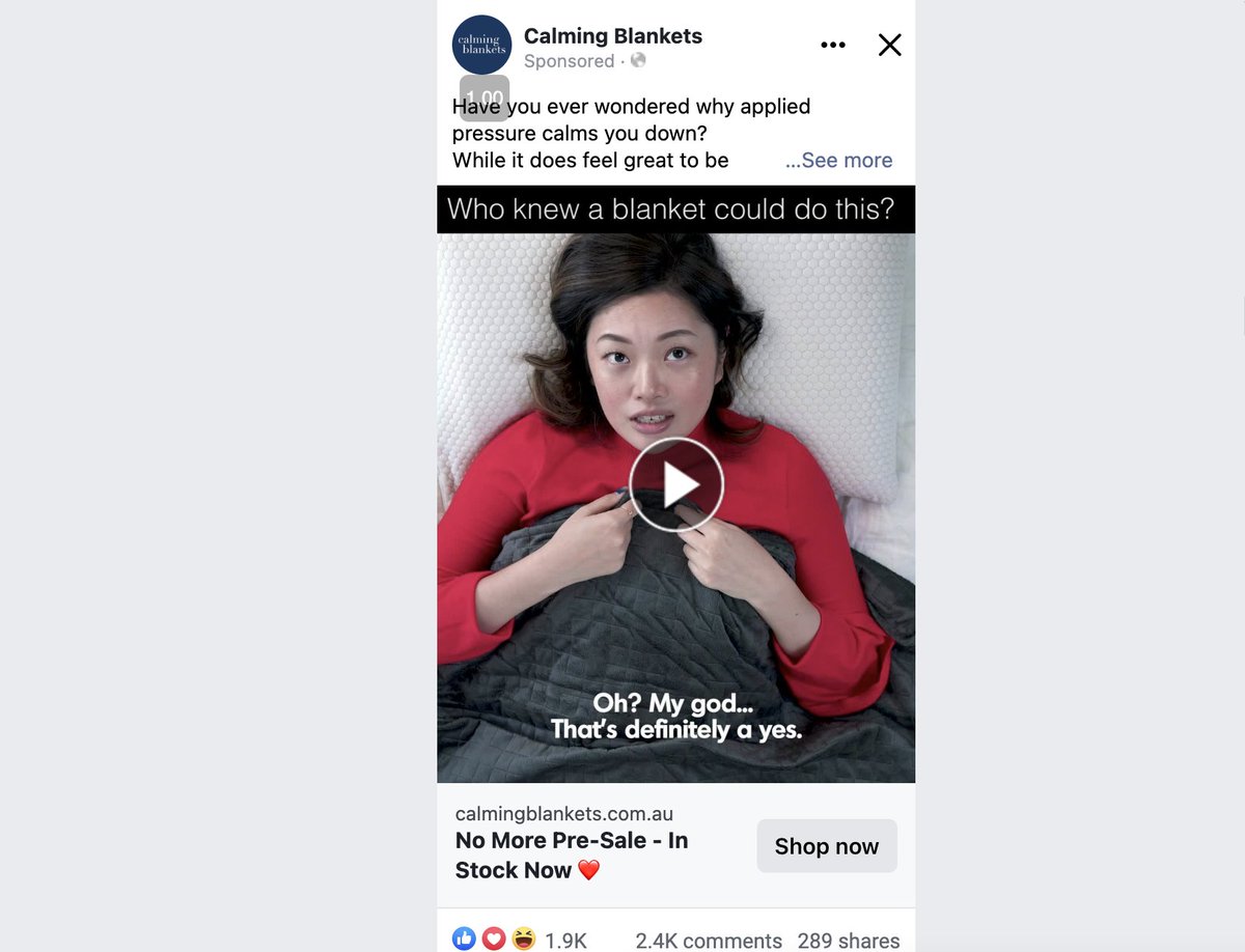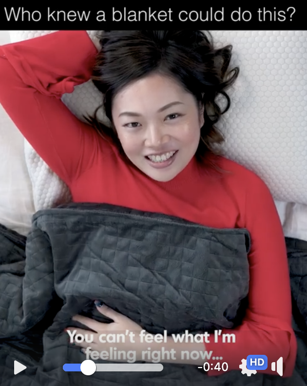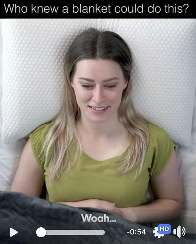 During the whole video, there's a banner that sparks curiosity Even if you don't need a new blanket, you are hooked You want to know what's going on That's how our brain works That's why we used Hook that amplifies that feeling cause the girl has an unexpected reaction