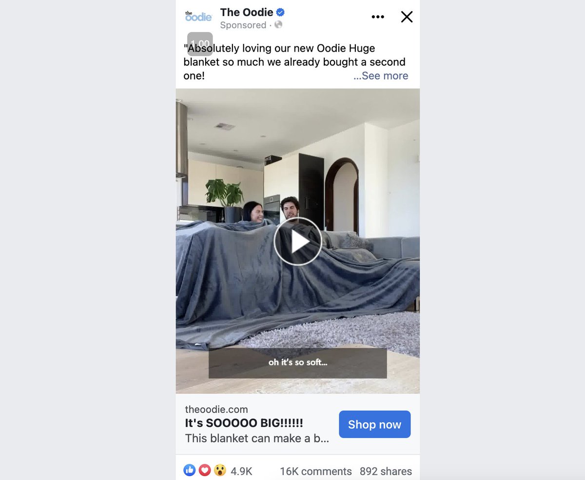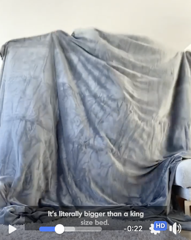 >Hook1 A simple line "This blanket is huge" combined with the speeded-up part of the couple getting seated while the blanket is covering them It's shot from a wide perspective so you can actually see how big the blanket is It's important to SHOW people something, not just tell