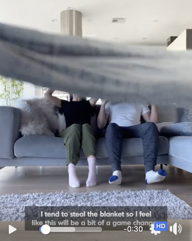 > Body The girl then mentioned how she usually steal his blanket, which is something most couple can relate to, and want a solution to that problem That's why we again showcase how BIG the blanket is It's a game-changer (as she says) Great product demonstration segment
