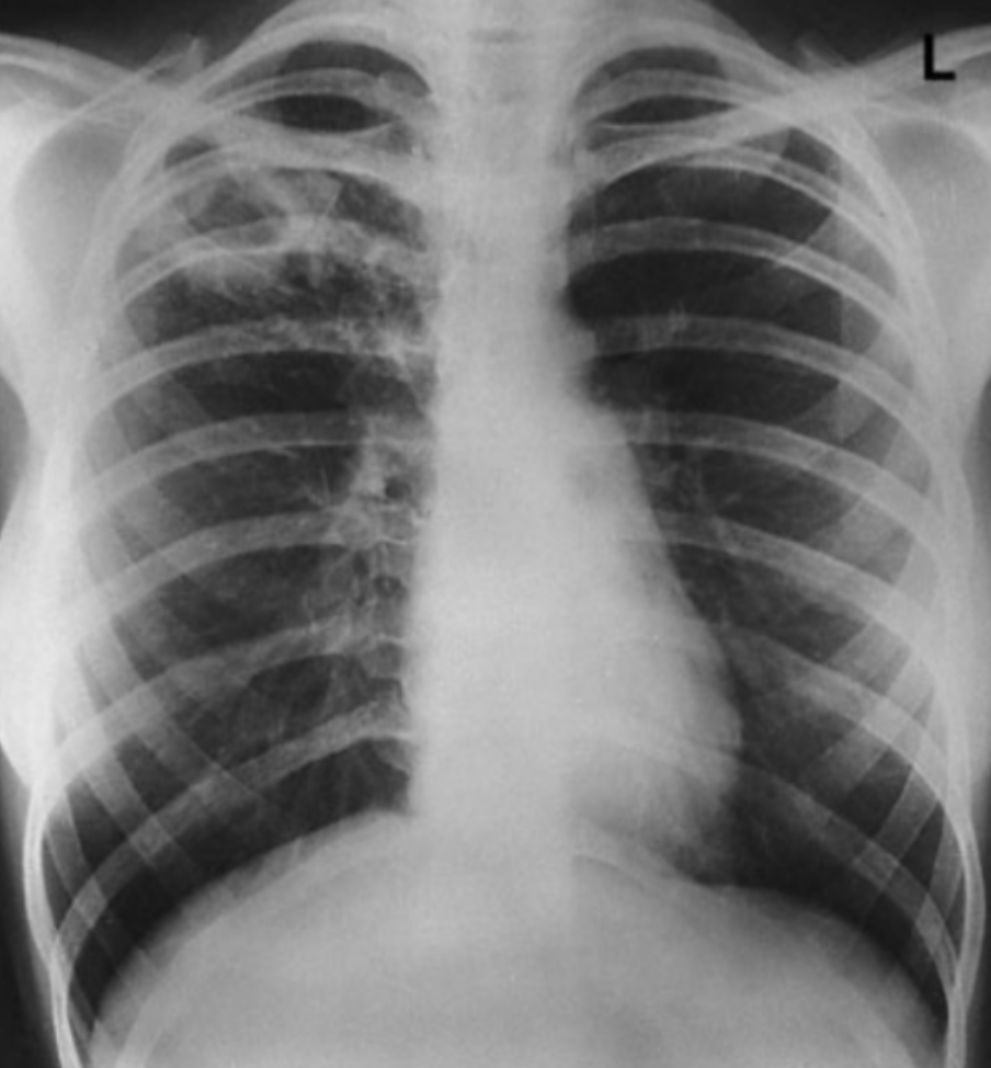 UPPER lobe infiltrate + hemoptysis/weight loss = reactivation TB Key in history: AFTER a patient was treated w/ infliximab (or other TNF-a inhibitors: etanercept, adalimumab, certolizumab bc it blocks granuloma structure) **This is ALMOST always in a patient tx for rheum dz