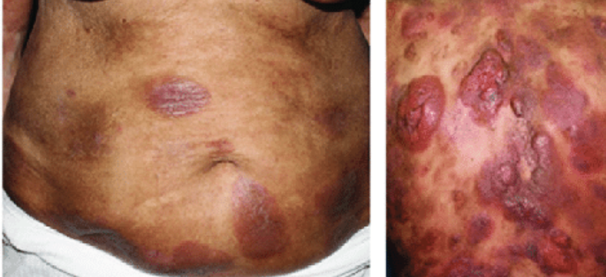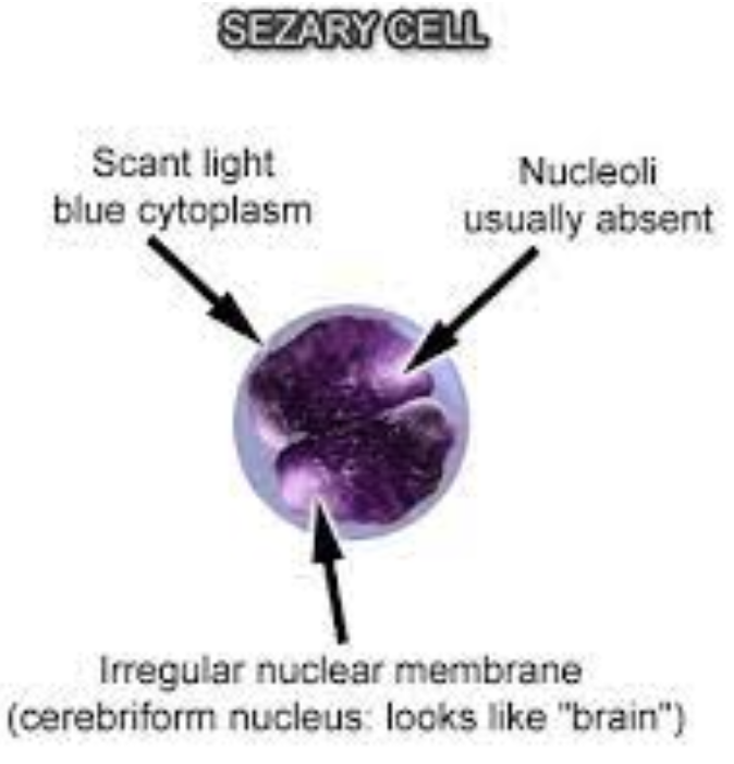Itchy, well demarcated CD4+ red plaques (erythroderma): - Mycosis Fungoides (if TQ tells you Sezary cells in peripheral smear +/- "hepatosplenomegaly/LAN" = Sezary Syndrome) Dx: Biopsy w/ lymphocytic infiltrate + microabscesses (Pautrier's Abscesses) within thickened epidermis