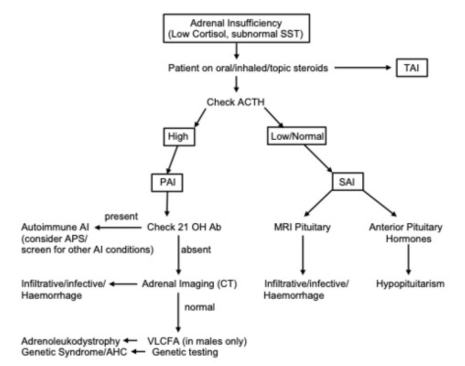 - Chronic Primary Adrenal Insufficiency! TB is the MCC of adrenal insufficiency in developing world. Don't get trapped into only being able to diagnosis Addison's / adrenal insufficiency by looking for the hyperkalemia & hyponatremia! **POMC breakdown product = MSH