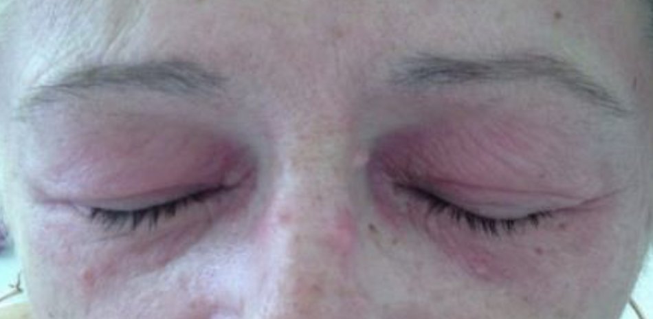 Answer: Dermatomyositis (watch for gastric/ovarian carcinoma & interstitial lung disease!) Note: these Gottron's papule & heliotrope eye rash are assoc w/ CD4+. What other rash comes to mind in patient that's immunocompromised with CD4+ erythroderma? - Mycosis Fungoides!