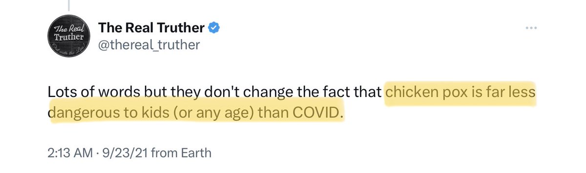 “Which disease do you prefer my child get?” This, or some variation of it, is one of @thereal_truther’s favorite rhetorical devices, which he employs in the hopes of making a discussion so uncomfortable as to silence you. 🧵 1/