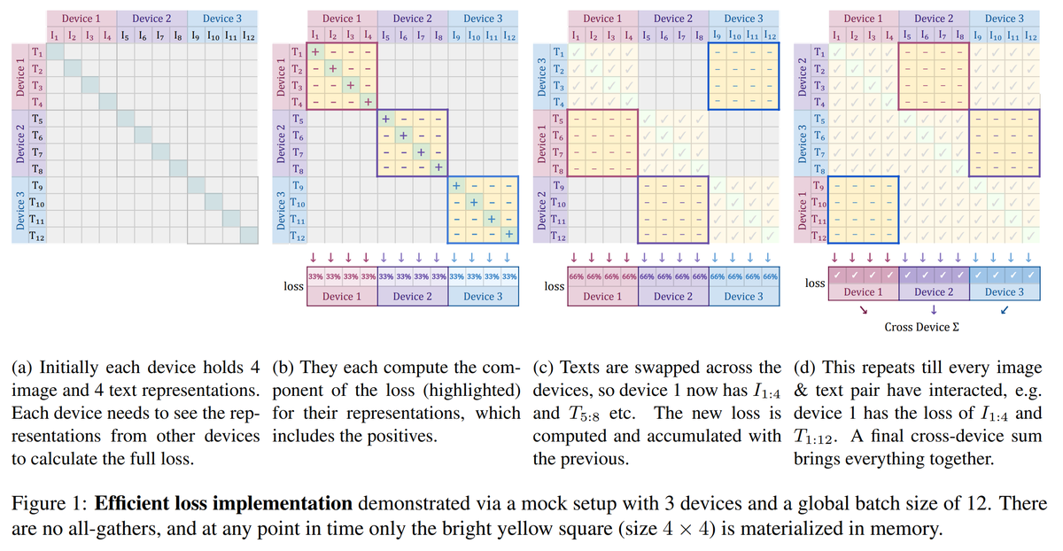 It's also much simpler code, and since every element in the similarity matrix is independent, makes it obvious that we can compute the loss "in chunks" across devices. Chunked sigmoid loss never instantiates the full all-to-all matrix, hence letting us scale batch-size.