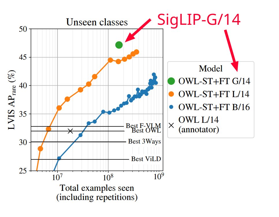 There's a few more goodies in the paper: https://arxiv.org/abs/2303.153... We also used this recipe to train the largest base model for the amazing OWL-ViT v2 open-world detector: https://arxiv.org/abs/2306.096... We're trying to open-source before ICCV🤞 Co-authors tagged in OP. End of🧶