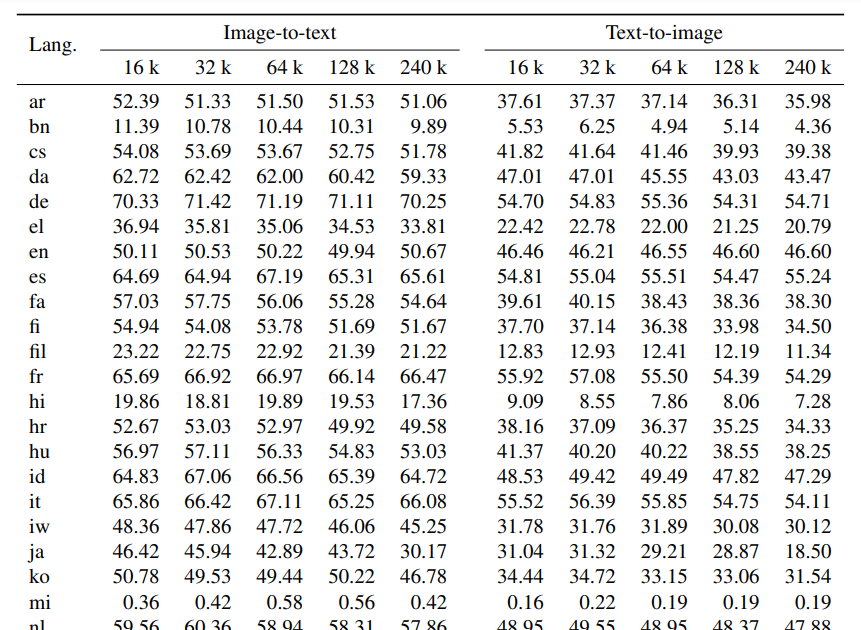 @giffmana @XiaohuaZhai @__kolesnikov__ @_basilM Another question about image retrieval - there is no Hebrew language code (he) in the table. What code did you use for it?
