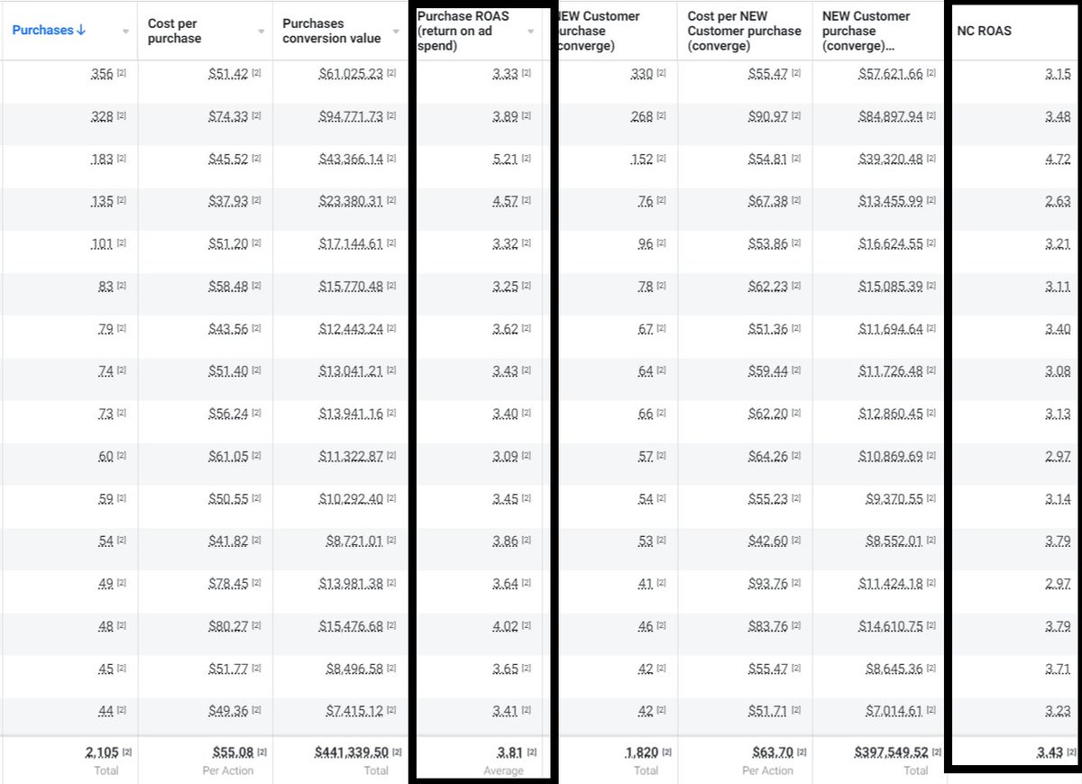 This is extremely valuable for my optimization, because in some cases, certain campaigns have good ROAS, but actually pretty low NC ROAS I experienced this with: > static ads > Web+Shop campaigns So then I'm actually decreasing the budget on those campaigns/ads Next step?