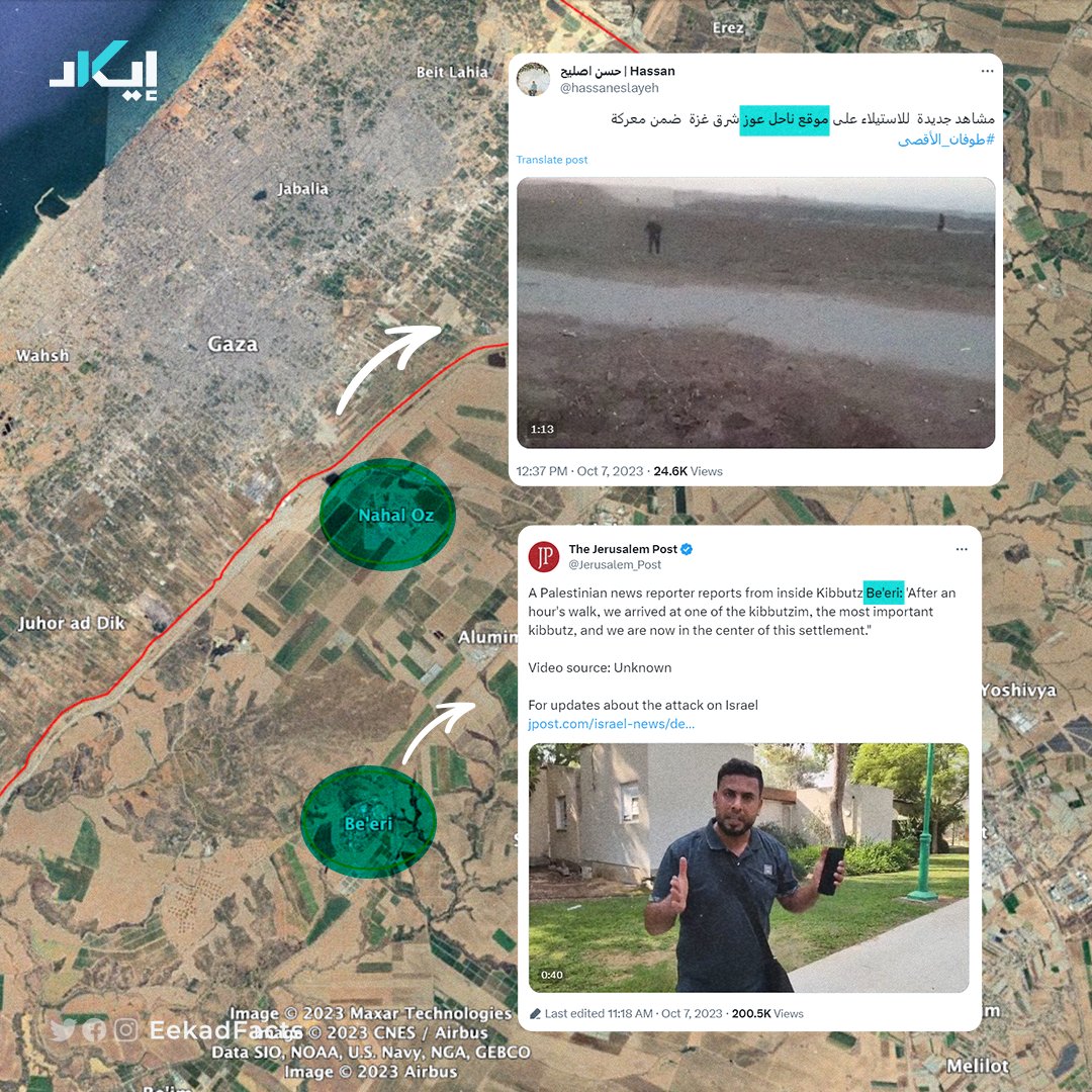 ✔️ ومن حيث المكان، فقد توثَّقت إيكاد من وصول "القسام" إلى مستوطنات سديروت وناحال عوز وبئيري.