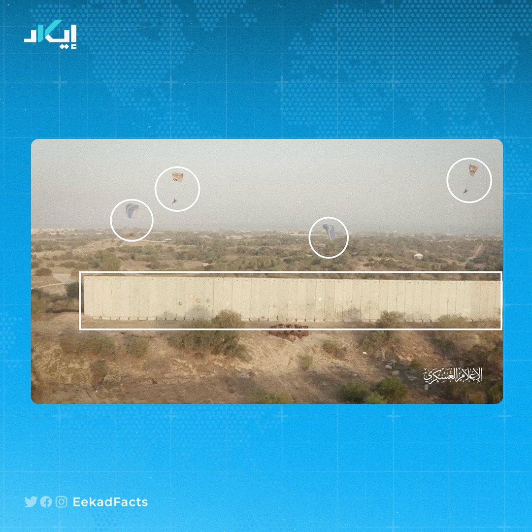 🔻 بتحليل المقاطع التي نشرها حساب القسام عن إطلاق العملية الجوية، وجدنا أن إقلاع المقاومين تم قرب جدار فاصل بين القطاع وغلافه، في محاولة لاستخدام الجدار عازلًا لأنظمة الرصد، وكذلك للتخفي من الإسرائيلين في الطرف الآخر وقت الإقلاع.