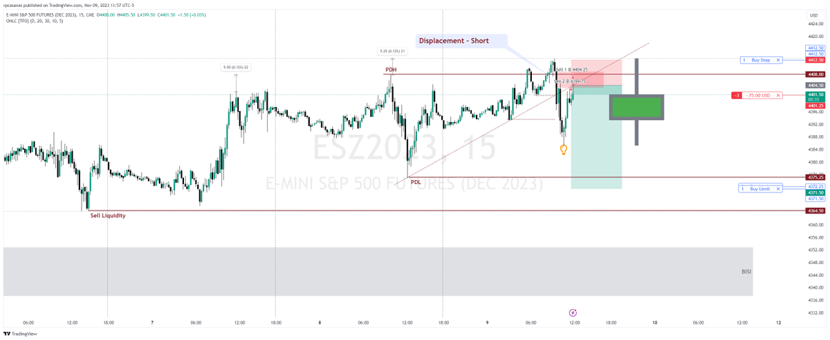 I've seen what I need now. (Time + Price) - Bigger tf Draw is higher - Rejection of bigger tf imbalance - Displacement back in the range - Look to take a fvg targeting the draw, in this case being eql highs.