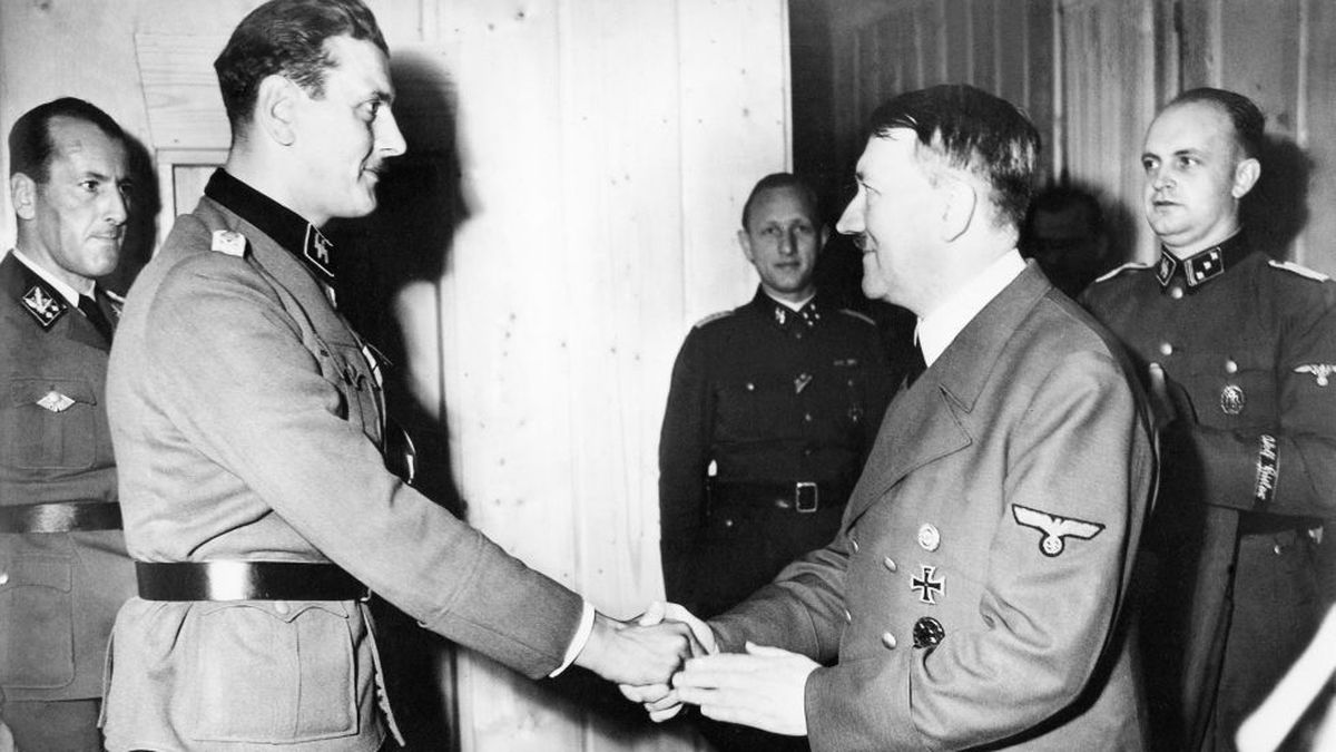 ordenó a los💂🇮🇹q colaboraran y así,sin un solo disparo,al cabo de 10 minutos Mussolini salía del hotel acompañado de varios miembros de las SS. Cuando Scorzeny le informó de q estaba siendo rescatado por orden directa de Hitler,Mussolini respondió emocionado: ¡Ya sabía que el
