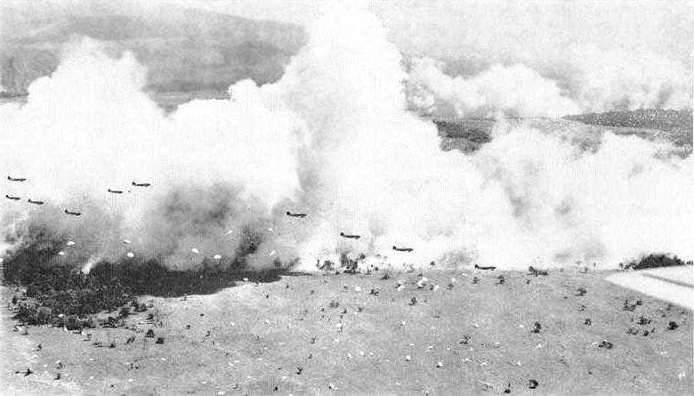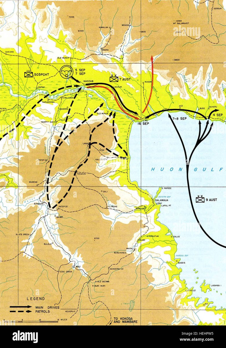 WWII en Twitter 5-Sept-1943 BATALLA DE NADZAB: Ataque aereo durante la Campaña de Nueva Guinea como parte de la captura de Lae. El objetivo era la captura dl aeródromo abandonado d Nadzab pero también cortar las posibilidades de retirada hacia el oeste de la guarnición🇯🇵en Lae.