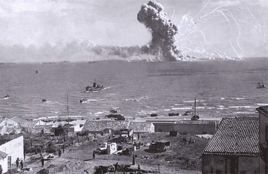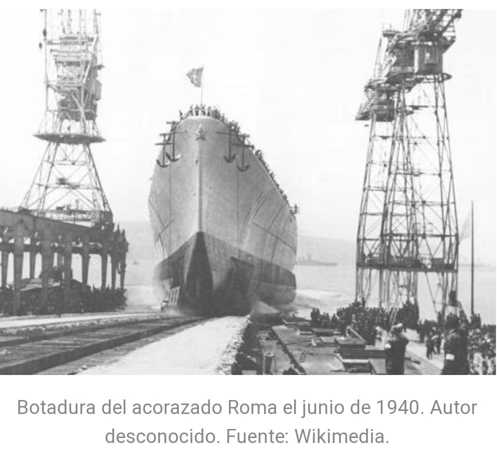 La Luftwaffe ataca a la flota🇮🇹 q había salido de La Spezia camino d Chipre. Entre ellos estaba el🚢🇮🇹Acorazado Roma,q fue hundido.Unos 1.400💂🇮🇹murieron en el naufragio.En el hundimiento del Roma la Luftwaffe usó por primera vez una nueva arma: la bomba guiada antibuque Fritz X.