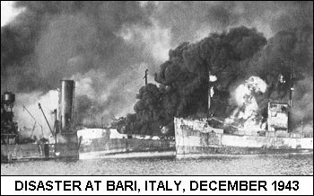 WWII en Twitter 3-Dic-1943 En Bari,el gas mostaza q explotó en el🚢🇺🇸Harvey había formado nubes de humo,y otra parte se mezcló con el combustible q había en el agua procedente d otros🚢hundidos o dañados y terminó impregnando la piel d los marineros q se habían lanzado al agua👇
