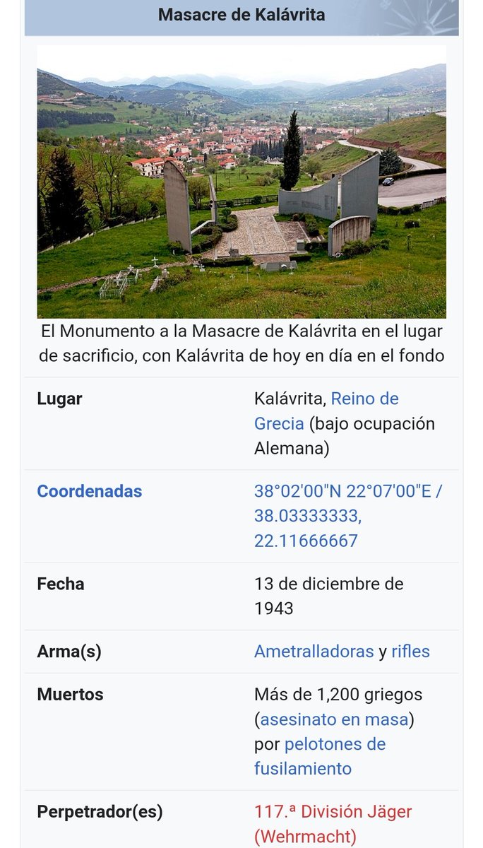 WWII en Twitter 13-Dic-1943 MASACRE DE KALAVRITA(🇬🇷): La Wehrmacht,con una operación,intenta acabar con ls guerrilleros de la Resistencia griega enla zona montañosa q rodea Kalávrita.En represalia,78💂🇩🇪,hechos prisioneros x la guerrilla en octubre,son ejecutados. Hitler ordena👇