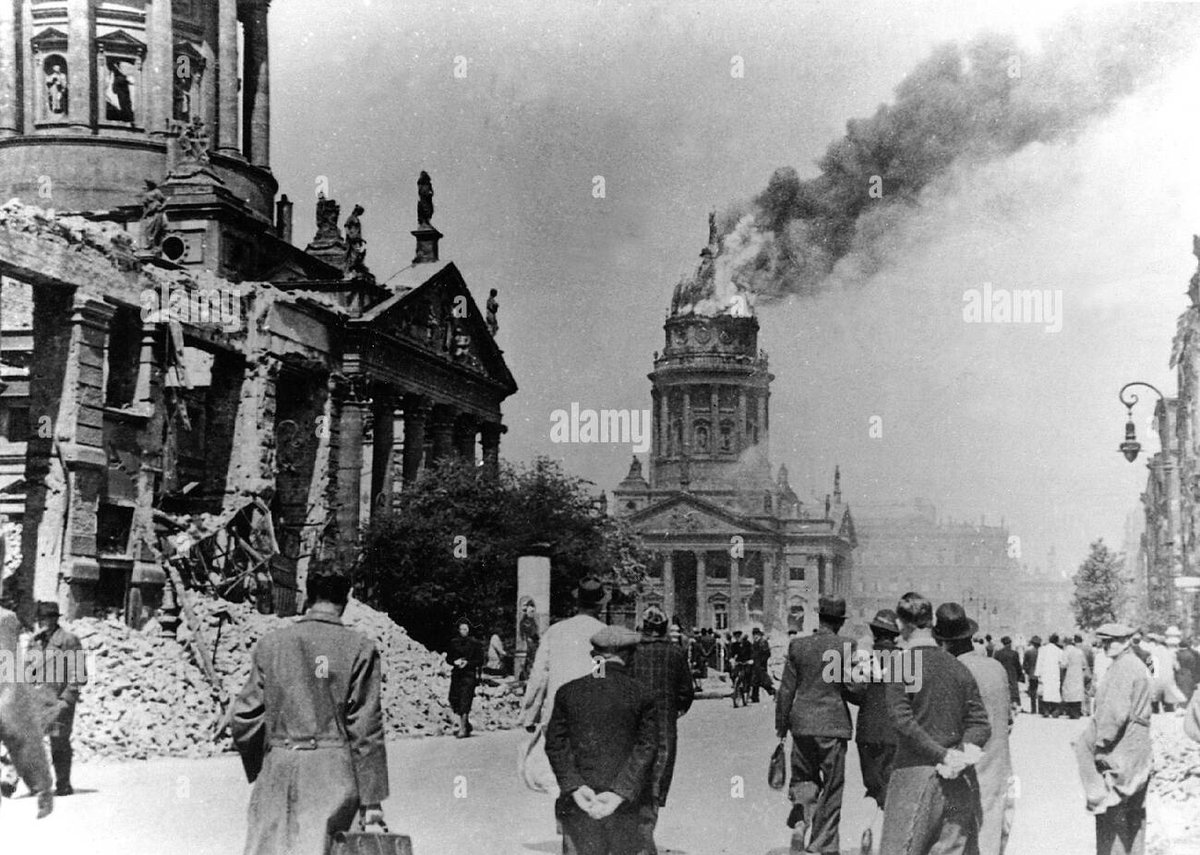 WWII en Twitter 17-Dic-1943 Berlín es bombardeada por 483✈️ bombarderos🇬🇧.El sistema ferroviario cerca d Berlín resultó dañado,hasta el punto d q un millar d vagones cargados con material destinado al frente oriental quedó retenido durante días.El Teatro Nacional fue destruido🎞.