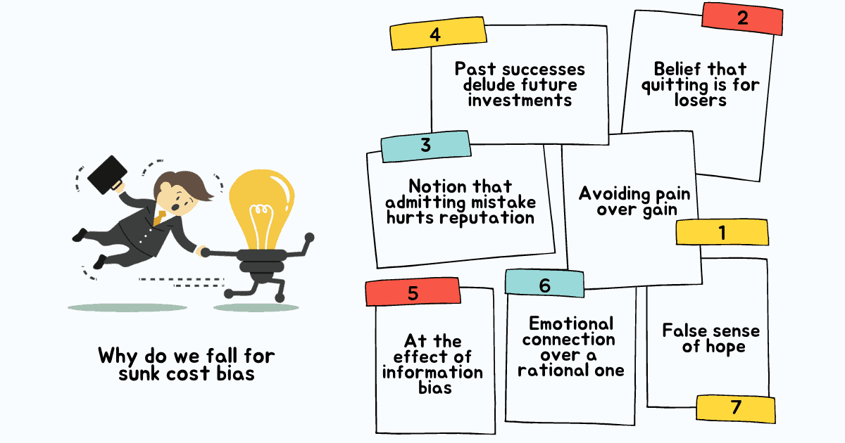 7. The Sunk Cost Fallacy: People continue investing in something because they have already invested time, money, or effort, even if it no longer makes sense. Assess decisions based on future prospects rather than past investments.
