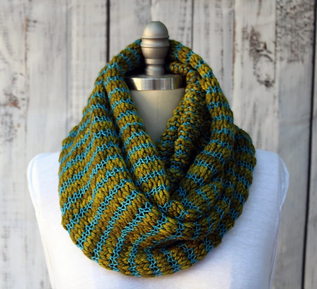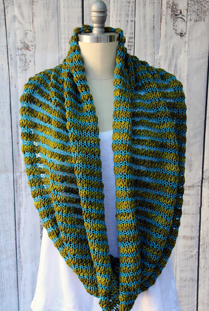 the Simple Ribbed Cowl by Orange Flower! One skein of a nice yarn like Malabrigo would go really far. It's also reversible! https://www.ravelry.com/patter...