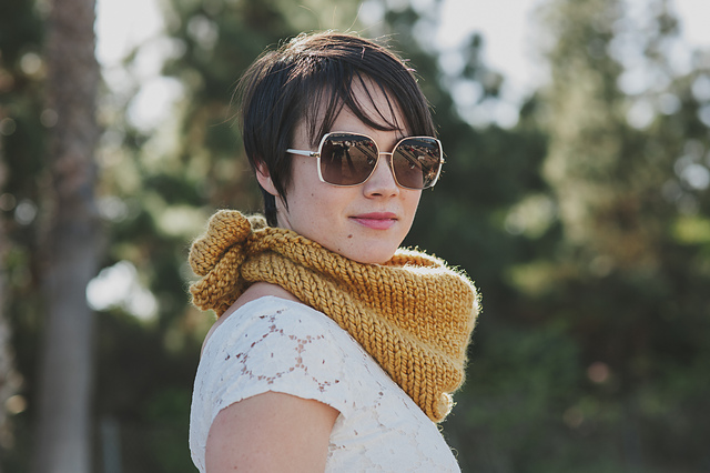 the Purl Soho Bandana Cowl would be really perfect with some extra ribs or as-is, also a one skein project PERFECT for beginners or those attracted to cotton yarns: https://www.ravelry.com/patter...