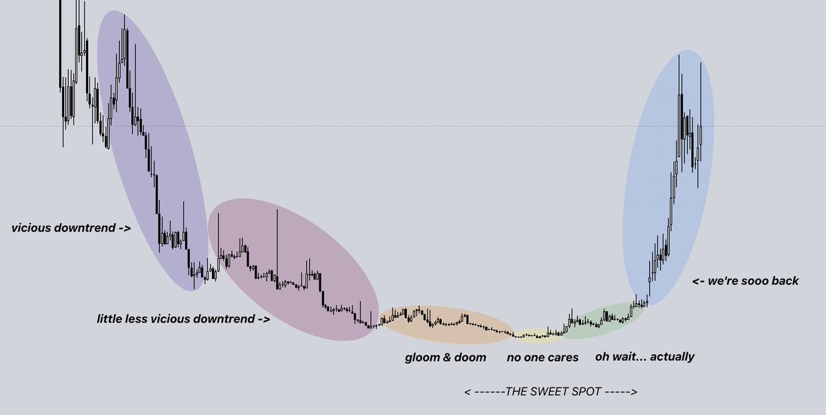 Let's take the example of $MC / $BEAM. At the absolute bottom of this chart: - they still had a 95M treasury (public info on website) - the team was still actively hiring (also public info) - one of the biggest accounts in the space was still on the team.
