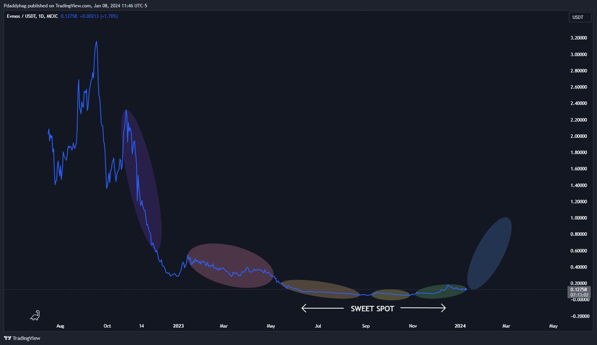 I think this is a nice way of scaling in when you've missed initial moves. A lot of coins will have big cool off periods like this where all attention fades. Now you know what to look for, good luck!
