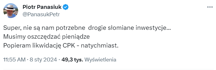 @MacVVilk Jest oczywiste, że projekt CPK trzeba poddać DOGŁEBNEMU audytowi. W 2022 NIK wydała na ten temat miażdżącą opinię. Niejasne, może celowo są źródła finansowania,lawinowo rosną koszty i opóźnienia. Do niedawna CPK był Misiem mającym zapewnić kasę tłustym kotom z PiS. Niczym więcej
