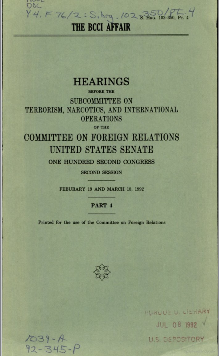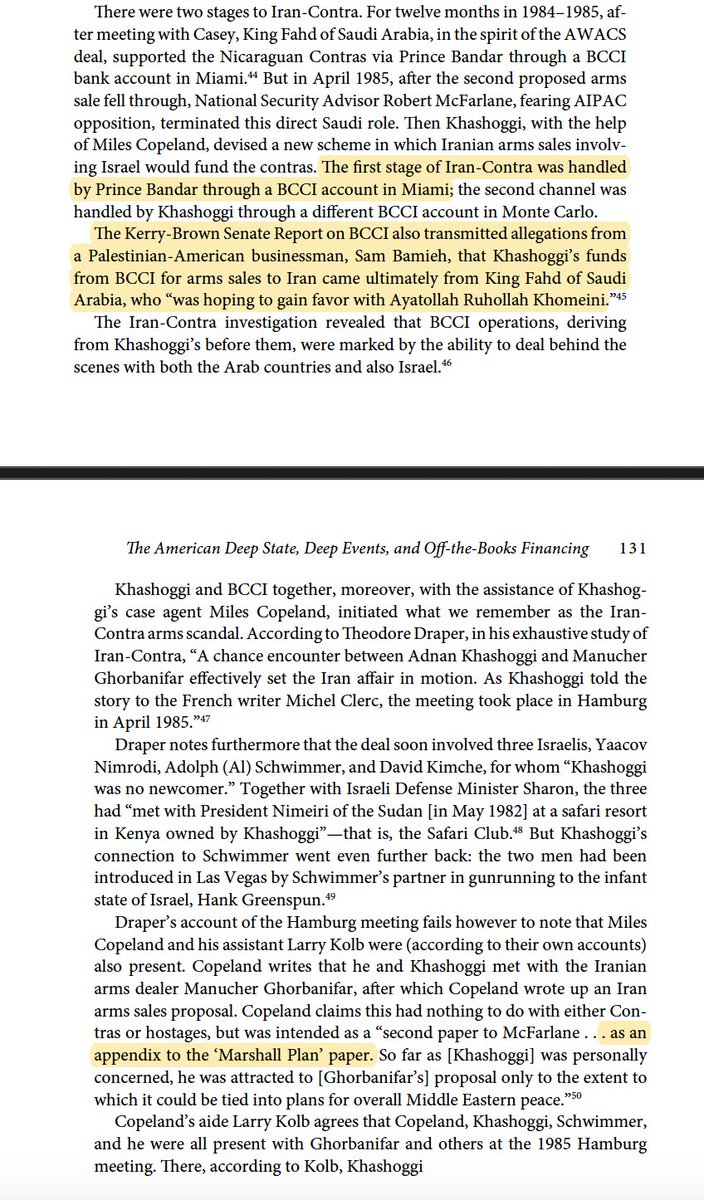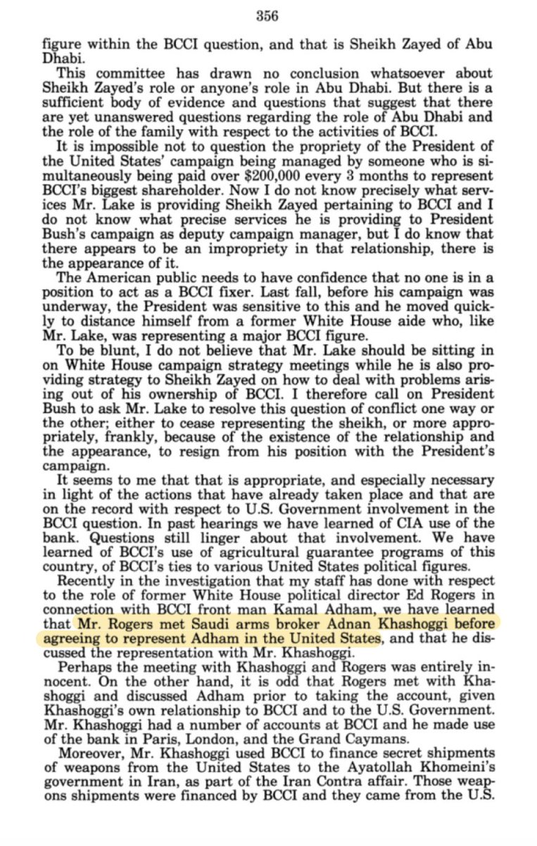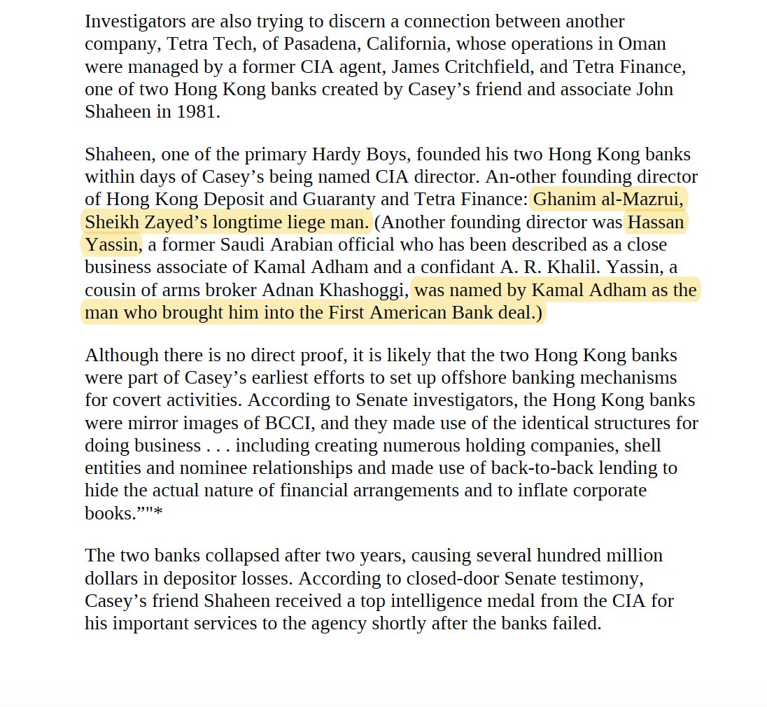 💥💥💥💥💥💥💥💥💥💥💥💥💥 ولو تمعنا في تفاصيل جلسات الاستماع المعلنة لفضيحة ايران كونترا وقارنها بتحقيقات مصرف الاعتماد BCCI سنجد دلالات واضحة ان المصرف بأكمله كان جهاز لتمويل العمليات الاستخبارية الامريكية يتخادم على تمويله السعوديين والاماراتيين ومصارف كويتية امتدت عملياتهم