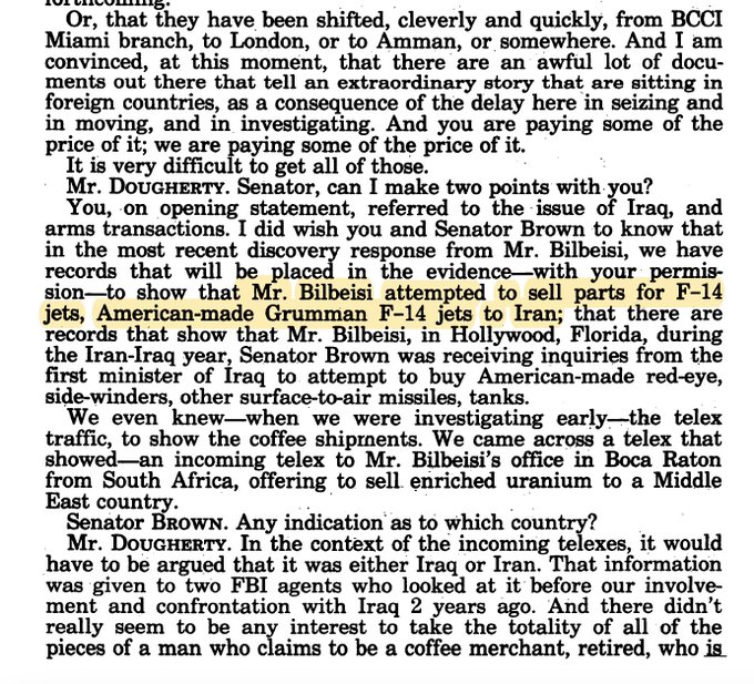 💥💥💥💥💥💥💥💥💥💥💥💥💥 من جلسات الاستجواب الناعم لفضيحة ايران كونترا التي لن يعرف احد مستقبلا حجمها الحقيقي نجد نقطعين مهمين الاول استجواب 26.10.1991 Betram Lance المسؤول عن مكتب الميزانيات في ادارة كارتر 22.10.1991 والثاني هو Abdur Sakhia مدير فرع مصرف BCCI في ميامي
