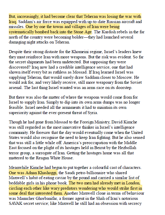 💥💥💥💥💥💥💥💥💥💥💥💥💥 اما في كتاب العميل بابل نجد تفاصيل توضح بأن اشرف مروان ايضا كان ضمن حلقة الموردين للاسلحة للجانب الايراني عبر تعاونه مع عدنان خاشقجي وكمال ادهم مدير المخابرات السعودي آنذاك ... هذه المواد تدمر رواية السعوديين بانهم كانوا قلبا وقالبا مع #العراق من الاساس
