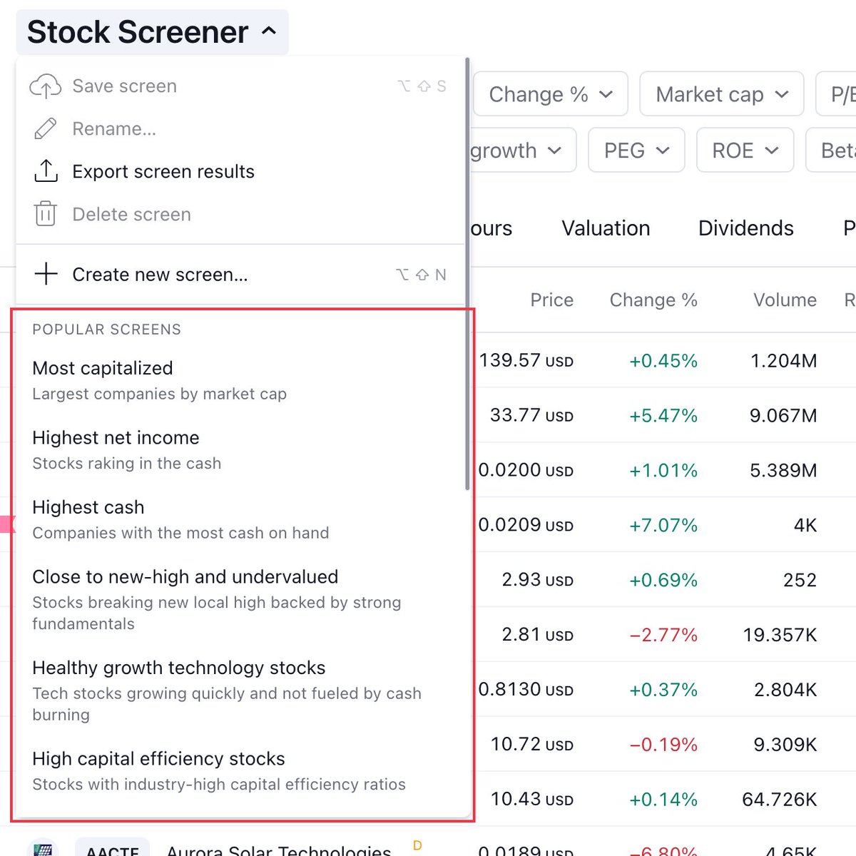 https://www.tradingview.com/bl... you guys may wish to refer to this blog article for more comprehensive walkthrough of the web screener.