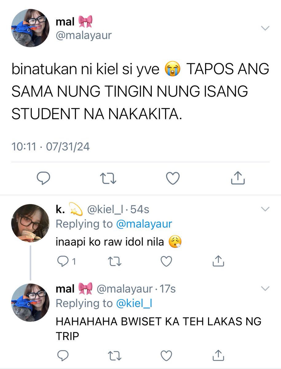 Kiel’s: Malaya Ricalde - blockmate & tropa ni kiel - 99.9% oa - bff ni noah Noah Vergara - blockmate & tropa ni kiel - team nonchy - bff ni mal, bff ? rin ni juls Julieane Robles - blockmate & tropa ni kiel - peacemaker - bff ? ni noah haha