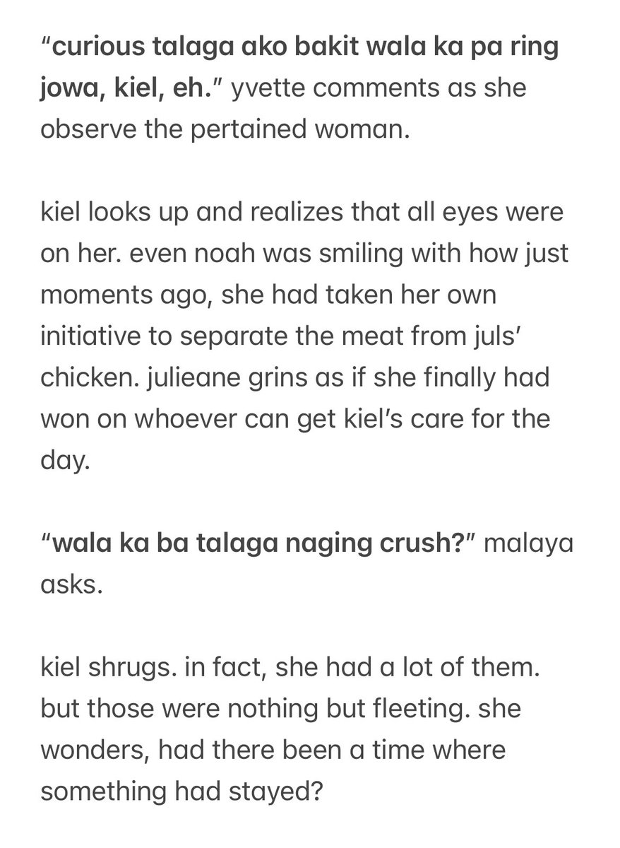 Kiel’s: Andrea Romero - kiel's bff since hs - blockmate ni kiel - tunay na nonchy Yvette Lim - kiel's bff since hs - blockmate ni kiel - tunay na oa