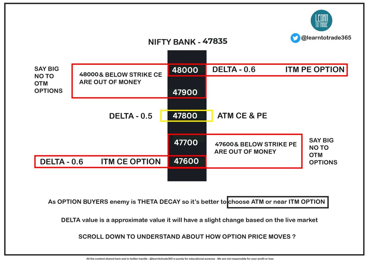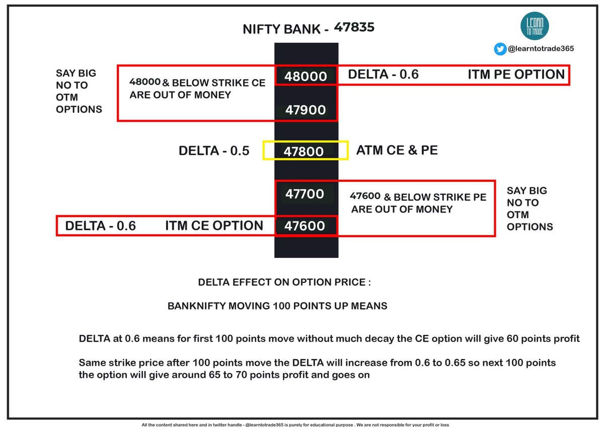2] Now will continue with [ BANKNIFTY Option Strike Price Selection ] First will understand the DELTA of an option to get clear idea about option strike price & always as an option buyer try not to choose OTM option to trade. Scroll down for moreπ
