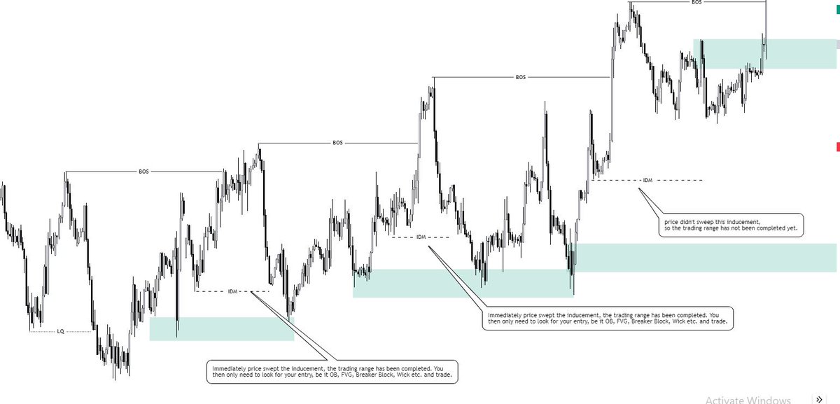 You should note that when price sweeps or invalidates the Inducement, that trading range is complete. So price can now decide to use your POI, FVG, Wick etc. to move in the direction of the market. Anyone you use among these entry types, you just find your setup and enter.