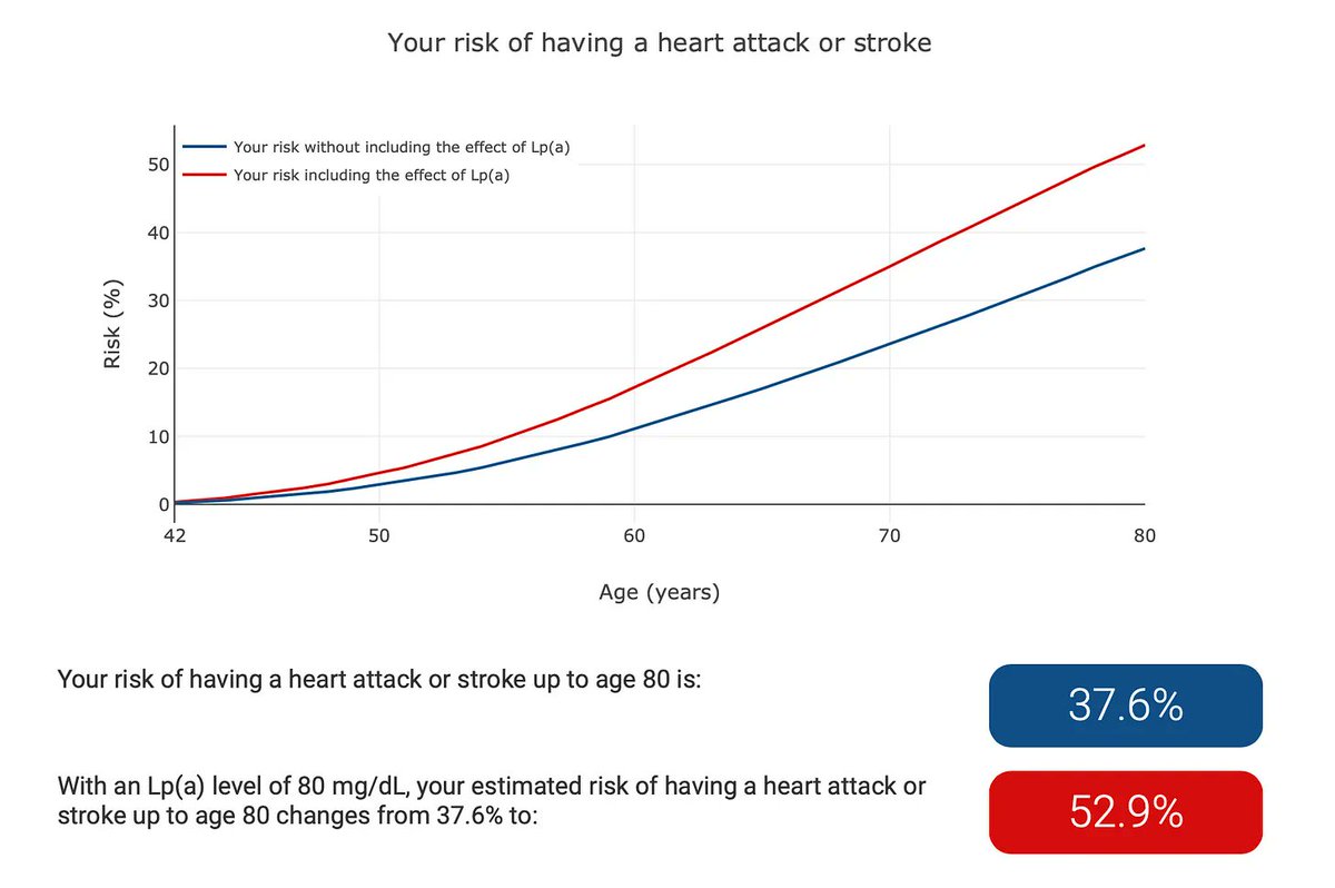 To date, there have been no reliable ways of integrating an Lp(a) result into a lifetime risk calculator. Until now. CAUSAL AI is an algorithm that calculates lifetime risk of a heart attack in those with ā¬ļø Lp(a) & what ā¬ļø LDL-C & ā¬ļø Blood Pressure does to that risk. /14